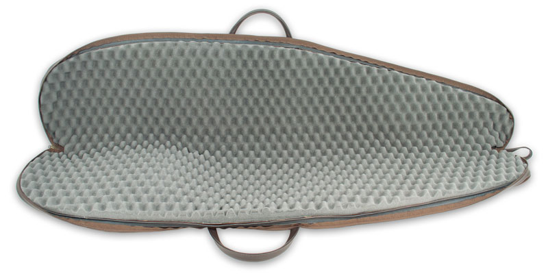 Futerał na broń wykonany z materiału PVC kamuflaż. Wykończenia ze skóry ekologicznej w kolorze czarnym. Wnętrze wypełnione gąbką profilowaną.