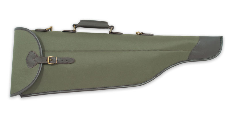 Futerał na broń składaną wykonany z tkaniny PVC, usztywniony. Posiada dwie przegrody, regulowany pasek wykonany z taśmy nośnej oraz uchwyt. Wykończenia z eko-skóry. Szerokośc u szczytu ok 23 cm.