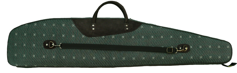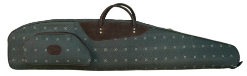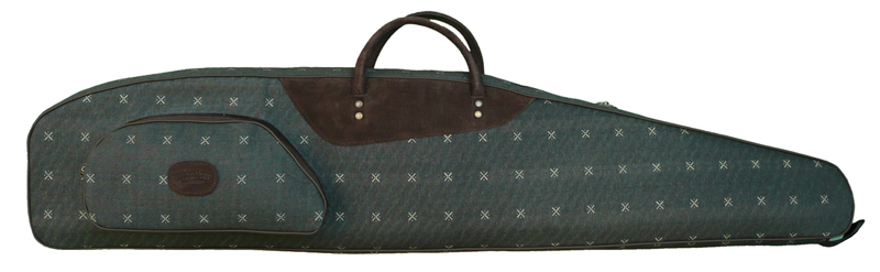 Futerał na broń z lunetą. Wykonany ze specjalnej tkaniny bawełnianej, podklejonej materiałem wodoodpornym. Posiada naszytą kieszeń boczną zapinaną zamkiem błyskawicznym. Wnętrze wypełnione gąbką profilowaną. Wyposażony w regulowany i odpinany pasek nośny oraz uchwyt do powieszenia na haku. Elementy ozdobne wykonane ze skóry welurowej (zamsz).