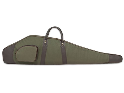 Futerał na broń długą z zamocowanym celownikiem optycznym. Wykonany z tkaniny PVC i obszyciami z eko-skóry. Posiada kieszeń boczną na zamek błyskawiczny. Wewnątrz wyłożony gąbką profilowaną obszywaną (zdjęcie nr 3 poglądowe). Na wyposażeniu regulowany pasek do noszenia na ramieniu z możliwością odpięcia.