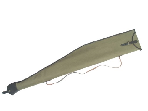 Pokrowiec na broń z lunetą wykonany z tkaniny brezentowej, lamowany eko-skórą.