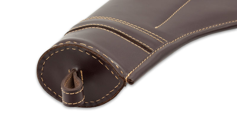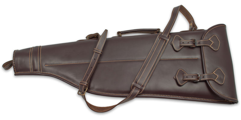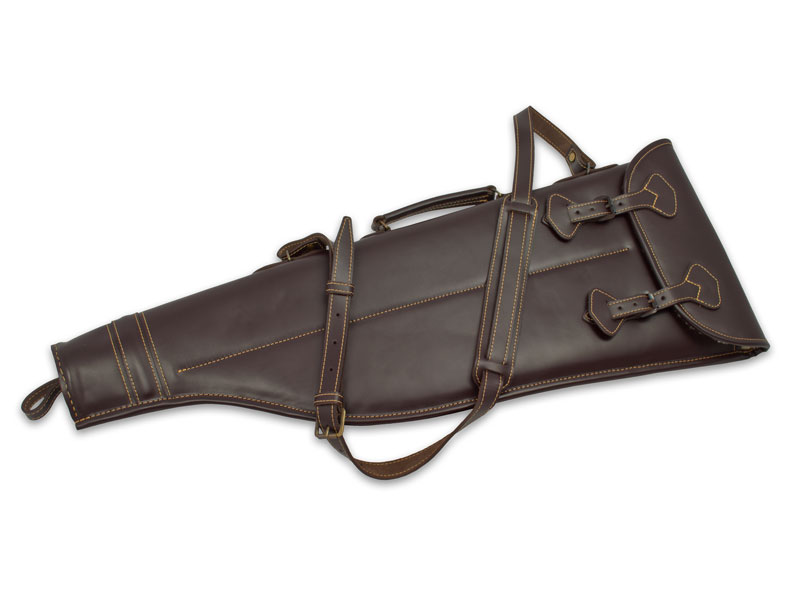 Ekskluzywny futerał na broń składaną w całości wykonany ze skóry. Wyposażony w uchwyt do noszenia futerału w pozycji poziomej oraz odpinany, regulowany pasek do noszenia futerału na ramieniu. Wewnątrz wyłożony naturalnym "barankiem" wełnianym. Posiada również uchwyt umożliwiający zawieszenie w pozycji pionowej. Szerokość u szczytu ok. 24 cm.