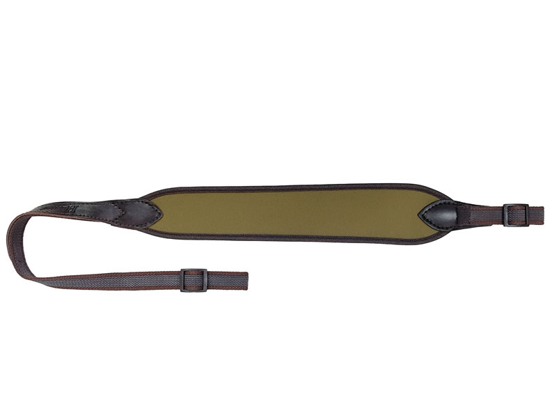 Ultralekki i bardzo wytrzymały neoprenowy pasek do broni wykończony elastyczną lamówką.