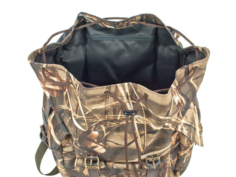 Wykonany wykonany z materiału PVC kamuflaż, niewielki ale pojemny plecak typu "kostka".