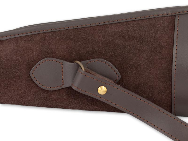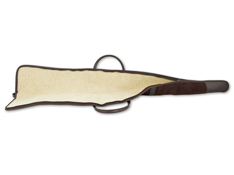 Skórzany futerał na broń bez lunety, wykonany z weluru (zamsz) z obszyciami ze skóry pull-up. Zamykany zamkiem błyskawicznym. Posiada naszytą kieszeń zewnętrzną. Wewnątrz wyłożony naturalnym wełnianym barankiem. Posiada skórzany pasek do noszenia na ramieniu o regulowanej długości wraz z naramiennikiem. Szerokość u szczytu ok 16 cm.