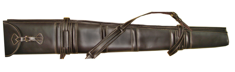Ekskluzywny futerał na 2 sztuki broni bez lunety w całości wykonany z matowej skóry typu "Old Chicago" , stylizowanej na starą. Wewnątrz wyłożony naturalnym "barankiem" wełnianym. Wyposażony w regulowany skórzany pasek nośny z naramiennikiem. Szerokość u szczytu ok. 18 cm. Futerał można rozdzielić.