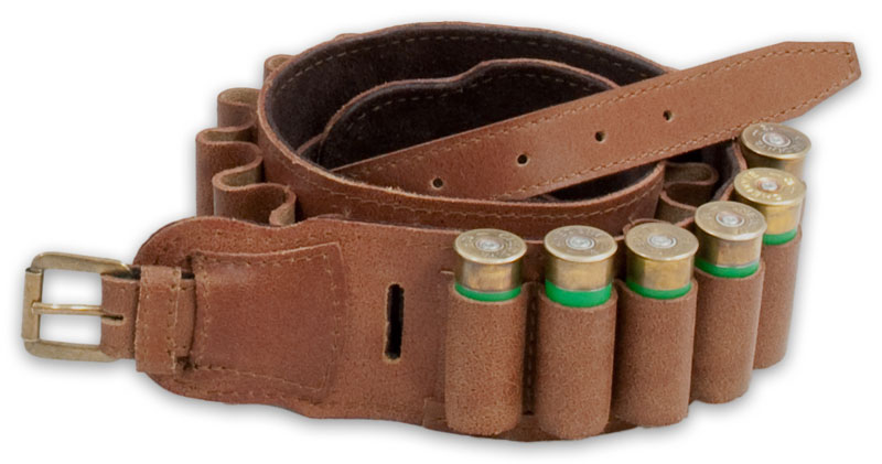 Pas na 25 sztuk amunicji śrutowej wykonany ze skóry. Otwarte fałdy przystosowane na kaliber 12 lub 16. Specjalny otwór przelotowy umożliwia schowanie nadmiaru paska zapinkowego.