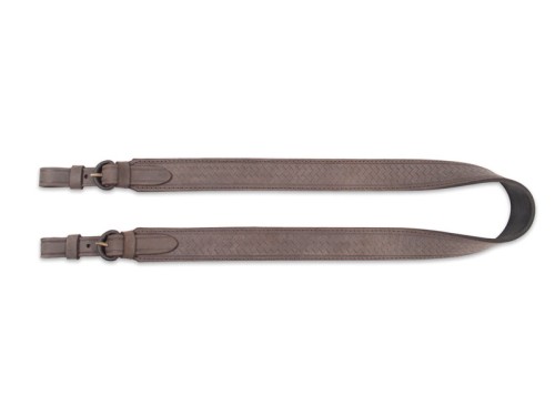 Wykonany ze skóry w kolorze brązowym. Tłoczenie na pasku imituje plecionkę. Podszyty antypoślizgową gumą ryflowaną. Sprzączki obszywane skórą w celu eliminacji hałasu i refleksów świetlnych.