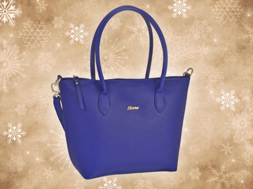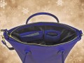 Torebka typu tote, wykonana z miękkiej skóry w kolorze indygo. Dno w kształcie prostokąta o zwiększa pojemność użytkową torebki.