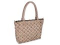 Torebka typu tote/shopper, wykonana z miłej w dotyku skóry nubukowej w kolorze jasno-brązowym, zestawionej z wysokiej jakości materiałem lnianym.
