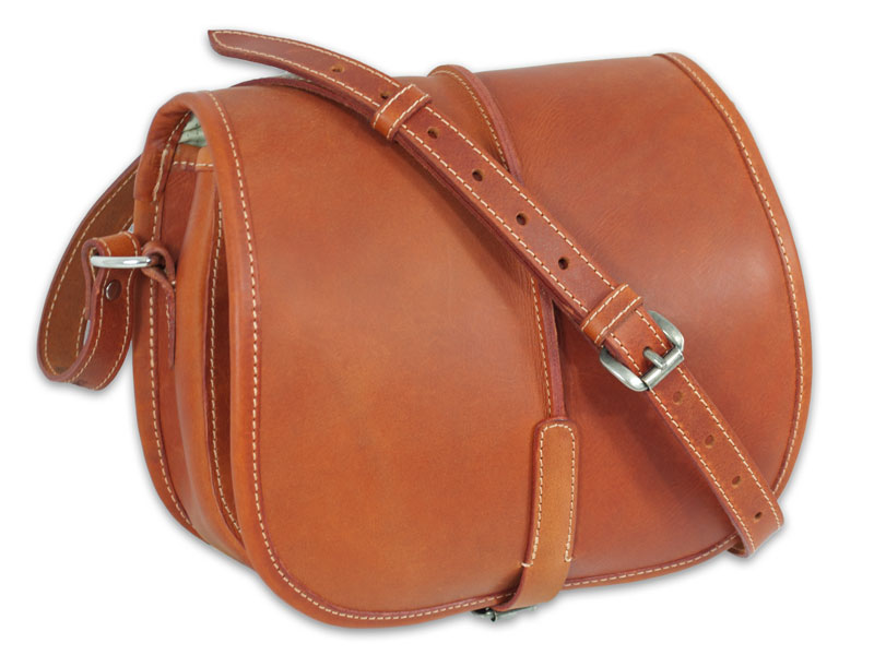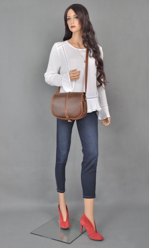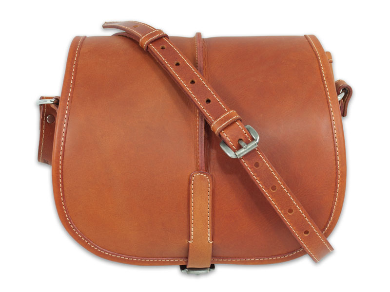 Torebka typu listonoszka wykonana w całości ze skóry juchtowej w kolorze brązowym. Pod klapką dodatkowa zewnętrzna kieszeń zapinana na zatrzaskę.
