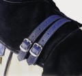 - In rigid unbleached canvas with blue suede panels and blue trim