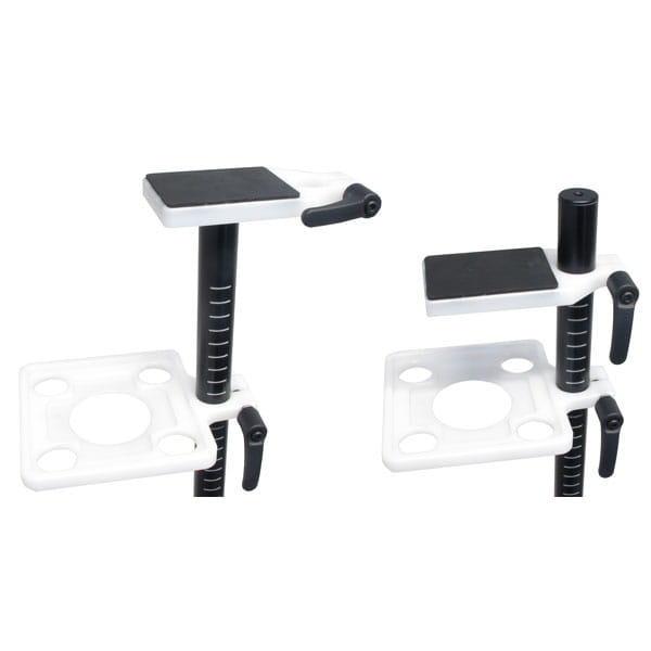 Trzecia, krótsza noga podpórki dostosowuje się do nierównych/pochylonych powierzchni i jest łatwa do regulacji za pomocą śruby regulacyjnej